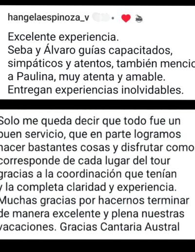 En Cantaria Austral, nos enorgullece guiar a viajeros en una travesía inolvidable por este paraíso natural. Cada tour está diseñado para que conectes con la naturaleza, descubras rincones escondidos y vivas momentos que quedarán para siempre en tu memoria.